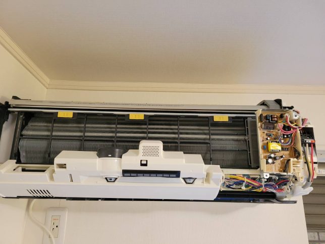 日立の高機能エアコンで、配線が多く複雑なので分解難易度はかなり高いです。