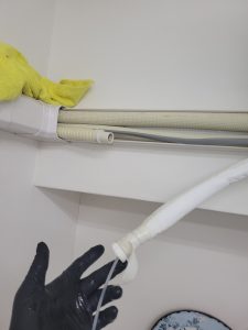 ドレンホースの先が軒下の壁に接していたのでそこから侵入したと思われます。