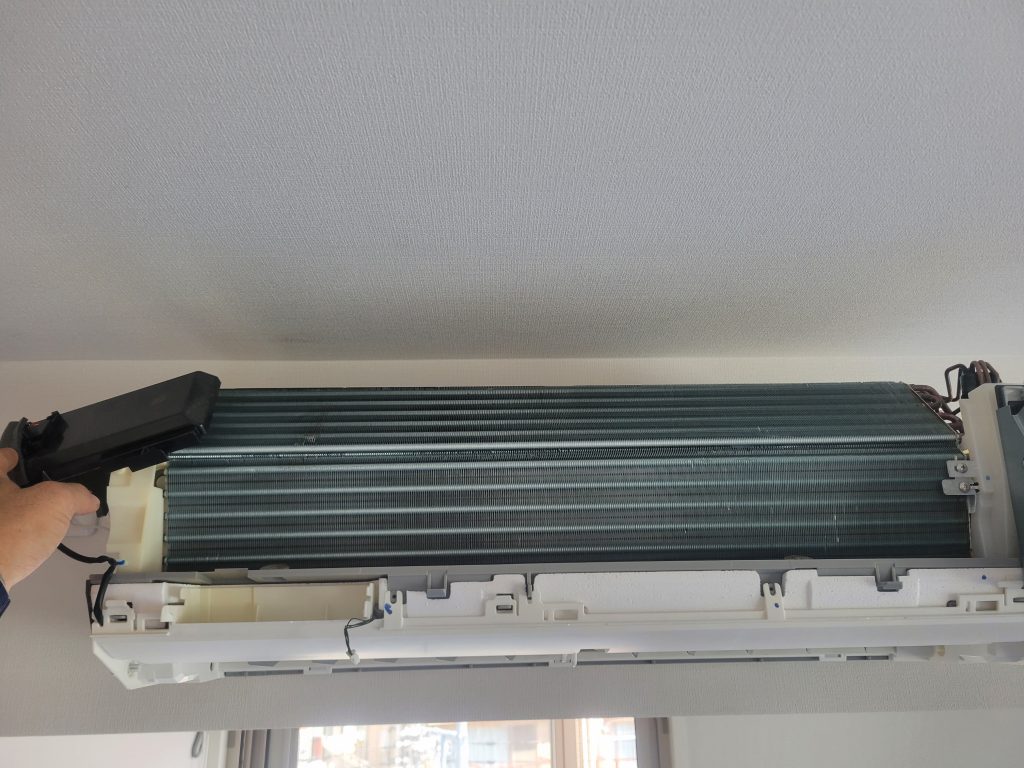 大田区 ダイキンのお掃除機能付きエアコン① 2022年6月28日 最終更新日時 : 2022年6月28日 web_admin大田区でダイキンのお掃除機能付きエアコン(F56VTRXP)のクリーニングをしました。2台ご依頼いただいた1台目です。この機種のお掃除ユニットはアーチ型で、天井とのスキマが狭いと引っかかって下ろしきれないこともあります。今回はあと数ミリ狭かったら下ろせなかったくらい、天井をすりながらもギリギリ下ろすことができました。吹出口は4年目としてはきれいです。2種類の洗剤と抗菌剤でしっかり洗浄しました。ダイキンのお掃除機能付きエアコンも全機種対応のおそうじフルパワーです!Follow me!
