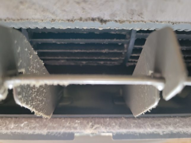 春日部市 富士通ノクリアのクリーニング 2024年7月7日 最終更新日時 : 2024年7月7日 web_admin春日部市で富士通ノクリア(AS-S40W2W)をクリーニングしました。お掃除ユニットを外します。キッチンからの油、クーラー使用時の結露に発生するカビ、そしてホコリが主な汚れです。アルミフィンの天面や奥側も汚れています。お掃除ユニットを外さないときれいにできない部分です。吹出口のビフォーです。同様にカビ、油、ホコリで汚れています。2種類の洗浄剤と抗菌剤で汚れを浮き上がらせ、高圧でしっかり洗浄しました。富士通ノクリアも追加料金なし、全機種対応のおそうじフルパワーです! Follow me!