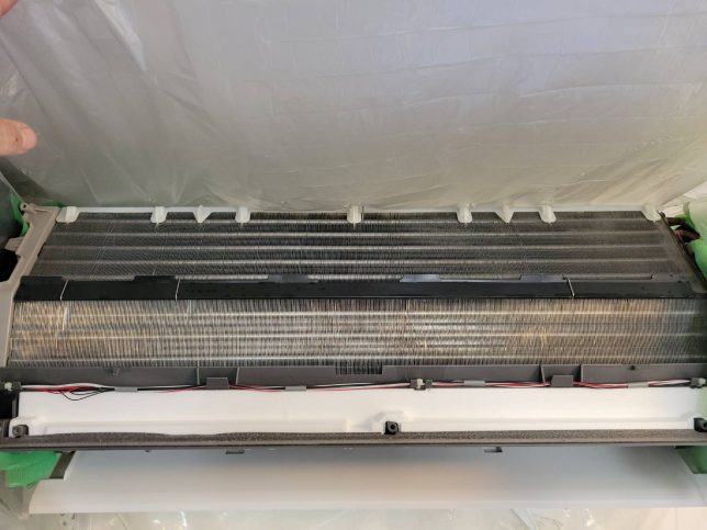 お掃除ユニットを外してアルミフィンがしっかり出た状態にします。
