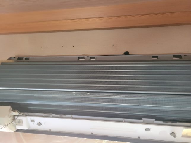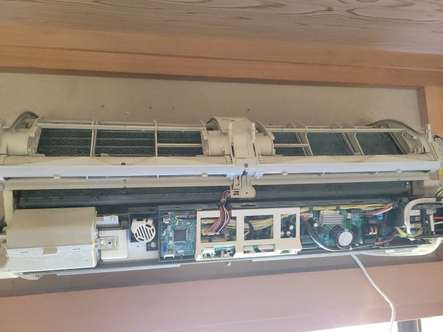 アルミフィンの隅々まで洗浄するためにお掃除ユニットを外します。