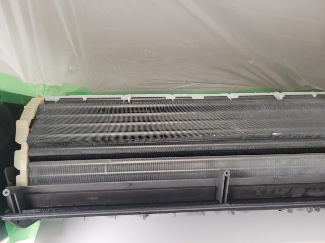お掃除ユニットの骨が太いのでアルミフィンがほぼ隠れています。