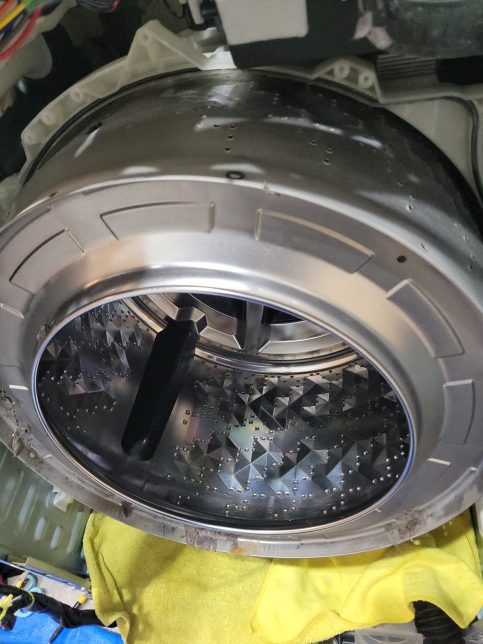 専用洗剤を使用して汚れを落として、きれいなドラム槽に戻りました。