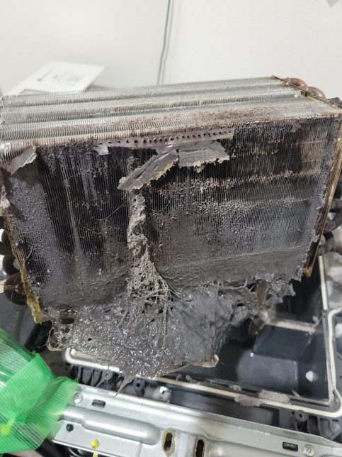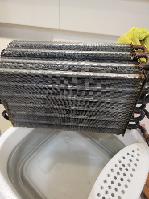 アルミフィンのスキマにも大量の汚れが溜まっています。