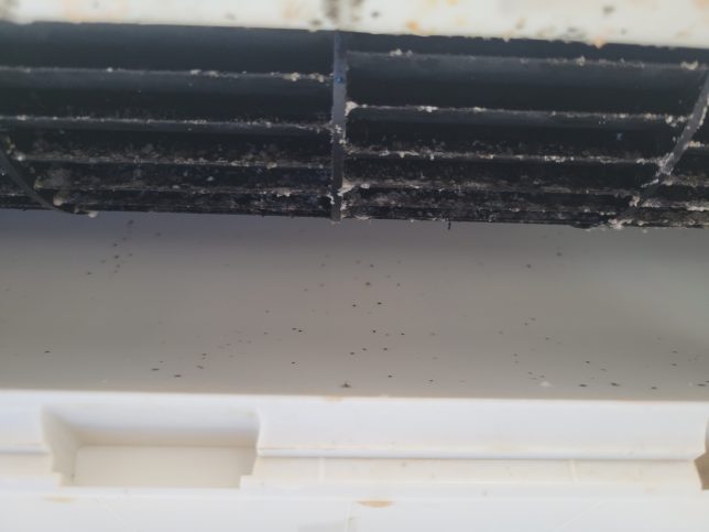 送風ファンは高速で回転するので、静電気が発生してお部屋のホコリが静電気でつきます。そのホコリが結露してカビが増殖します。