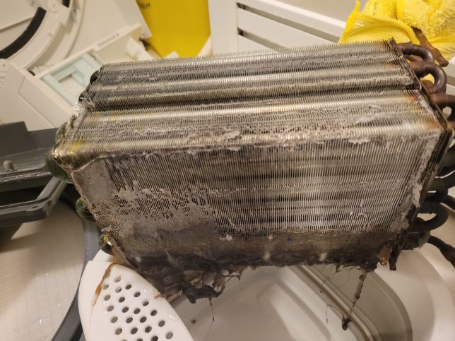 ●ヒートポンプを外した下側に汚れのかたまりがあります。