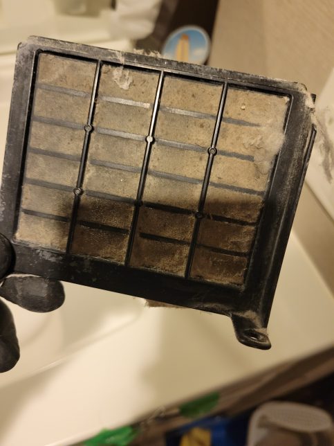 ビス止めしてあるフィルターも向こうが見えないくらいに目詰まりしています。
