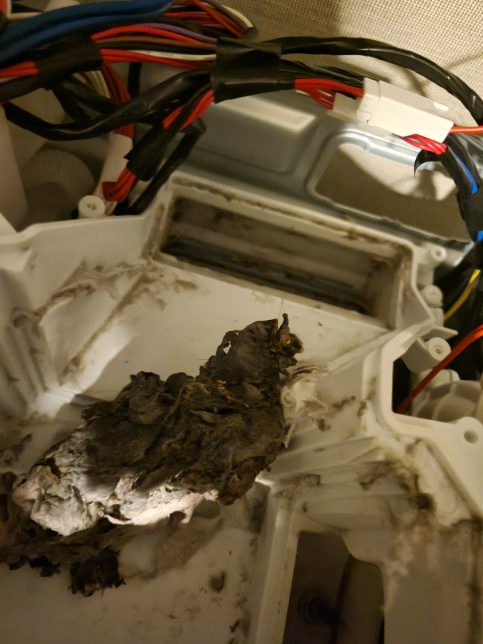 乾燥経路には湿ったホコリのかたまりが詰まっていました。