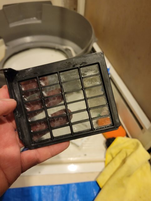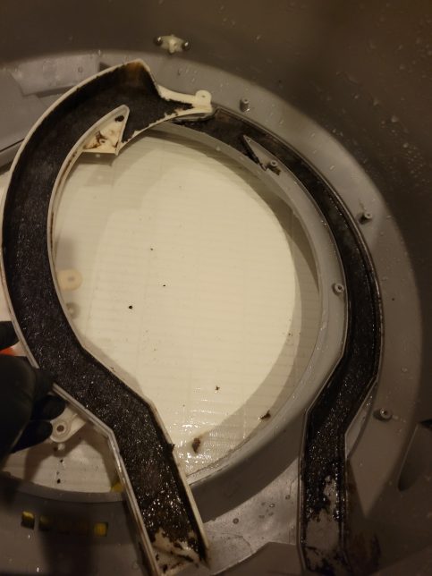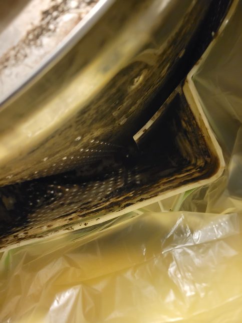 乾燥を使っていると汚れが黒くなりづらいのですが、乾燥しきれていないのでカビなどで真っ黒です。