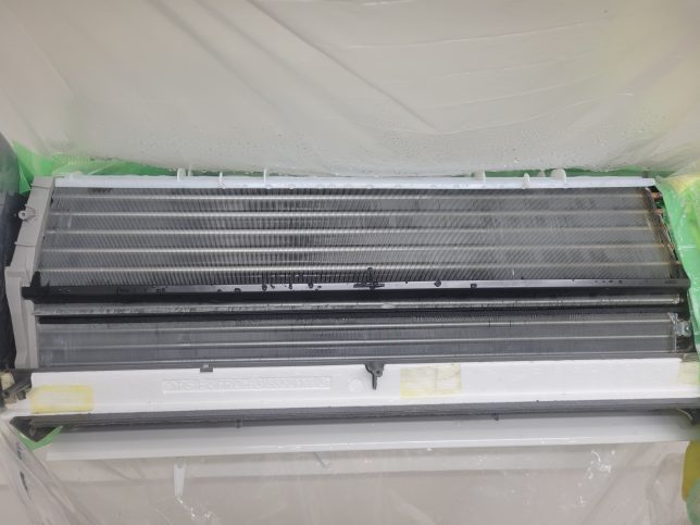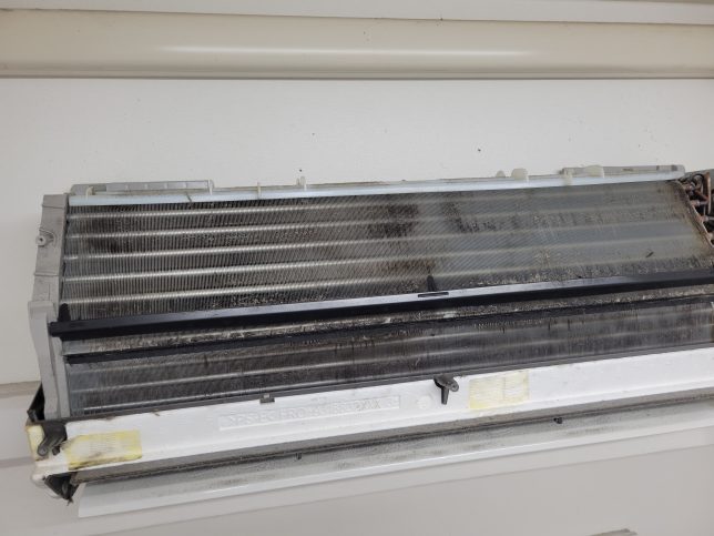 富士通はお掃除ユニットの骨が太くアルミフィンかほぼ隠れているのでお掃除ユニットの取り外しは必須です。