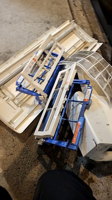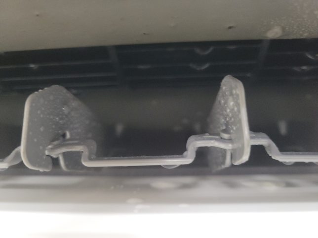 10年を超す機種で、モーターの破損も起きる可能性が高くなっているので手でルーバー(風向板)を動かすのはやめて負荷のかからない外し方をします。