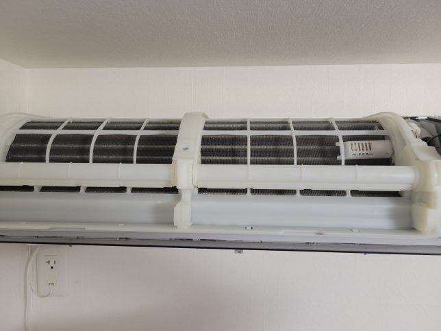 越谷市でシャープのお掃除機能付きエアコン(AY-N25H)をクリーニングしました。