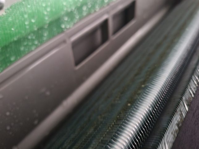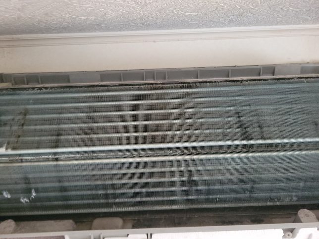 アルミフィンの汚れは熱交換率の低下による電気代の増加、低下した機能を補うためのエアコンの負荷に繋がります