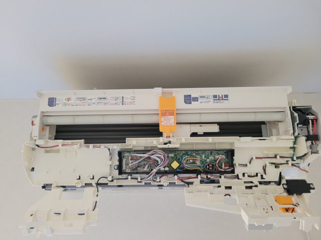 富士通の特徴でもありますがお掃除ユニットなどのパーツが大きくアルミフィンがほぼ見えない構造です。
