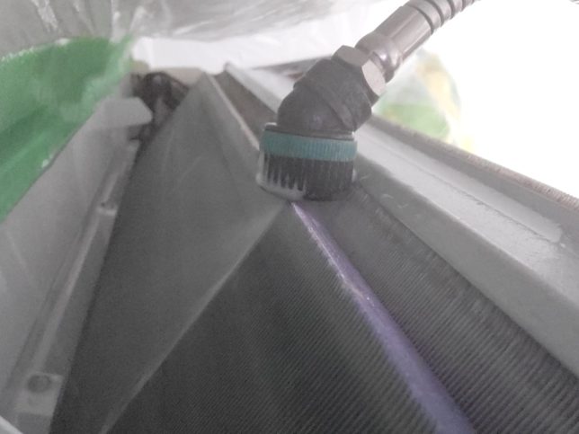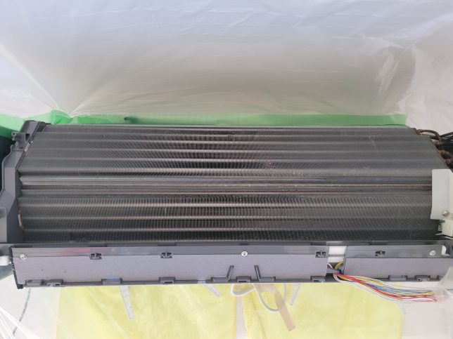 分解することでアルミフィンの奥側にもアクセスできるので隅々まで洗浄できます。
