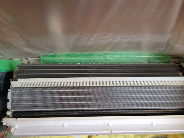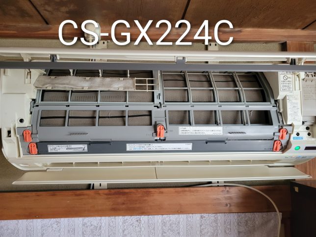 川口市でパナソニックのお掃除機能付きエアコン(CS-GX224C)をクリーニングしました。