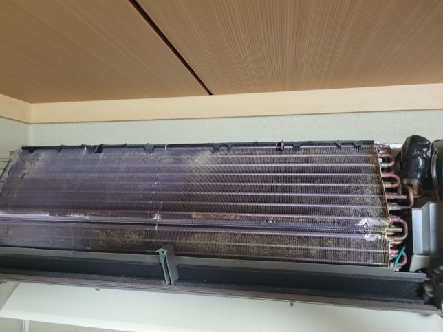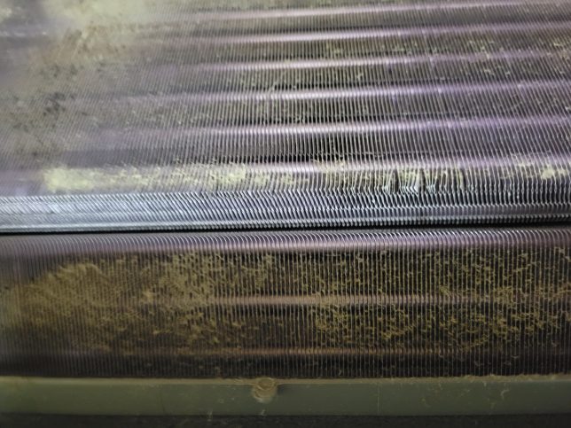 アルミフィンの汚れは熱交換率の低下による電気代の増加、低下した機能を補うためのエアコンの負荷に繋がります