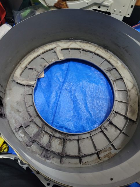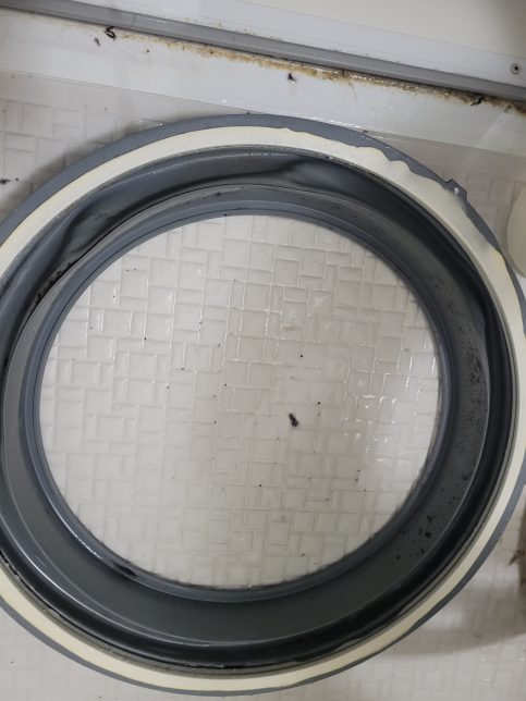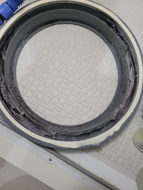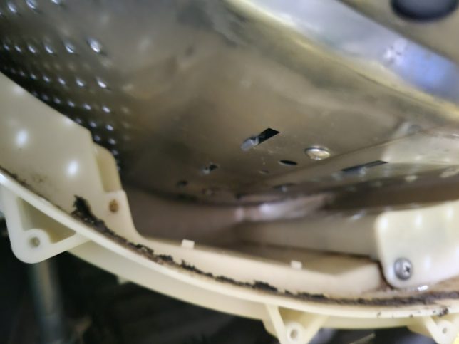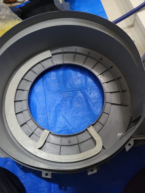 ドラム槽を覆っている脱水受けカバーの洗浄前です。