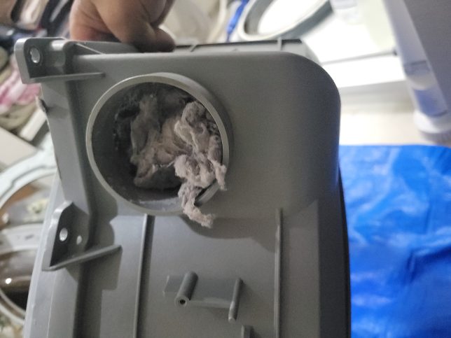 今回の嫌なニオイの原因は脱水受けカバー内やその周辺の湿ったホコリでした。
