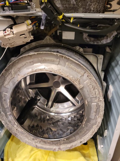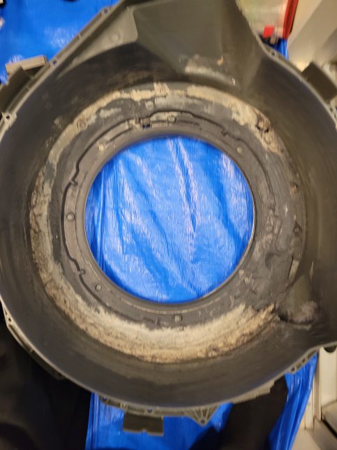 ドラム槽を覆っている脱水受けカバーに大量のホコリが溜まっています。