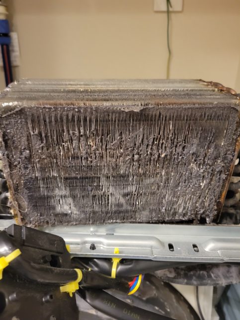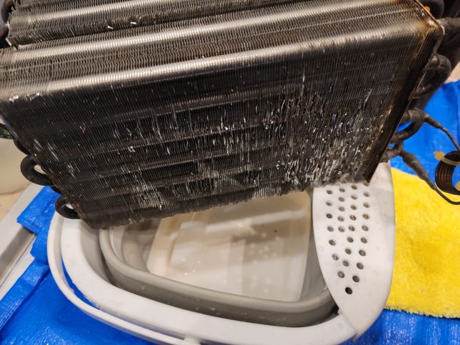 固着がひどかったため、アルミフィンを曲げないよう慎重に洗浄した結果、通常よりも時間がかかりました。