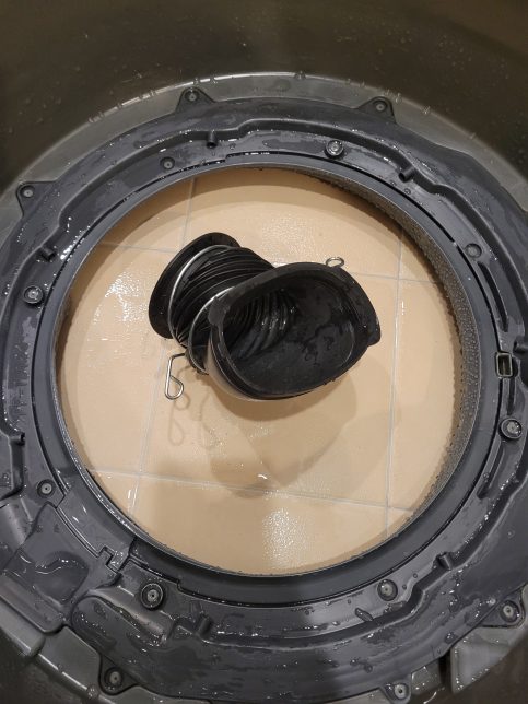 溜まったホコリは洗濯やすすぎの際に水分を含みますが、このカバー自体は回転しないので脱水しても水分が残り続けます。