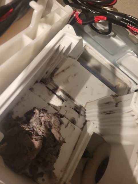 乾燥フィルターの奥のダクトに大量のホコリが溜まってダクトが塞がれていました。