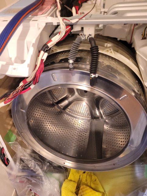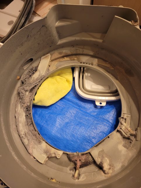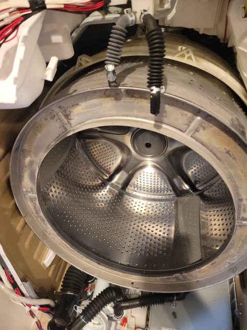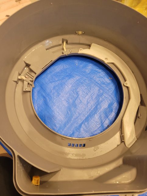 ドラム槽を覆っている脱水受けカバーにホコリが溜まっています。