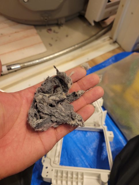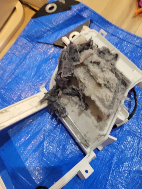 溜まったホコリは洗濯やすすぎの際に水分を含みますが、このカバー自体は回転しないので脱水しても水分が残り続けます。