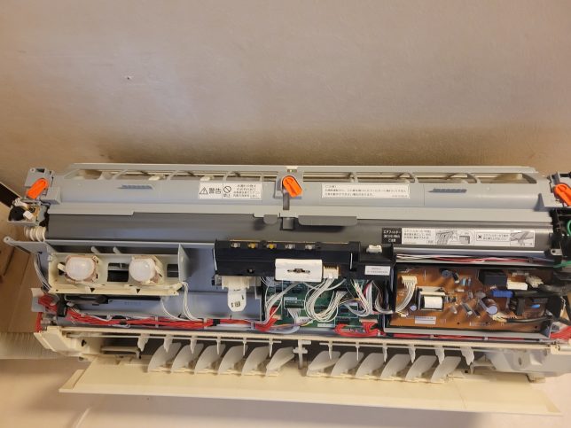 川口市でパナソニックのお掃除機能付きエアコン(CS-UX257C2)をクリーニングしました。