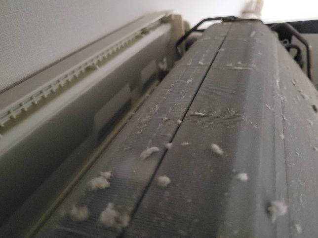 お掃除機能ではフィルター自体が移動するのでその際に丸まったホコリがアルミフィンに転がることも多いです。