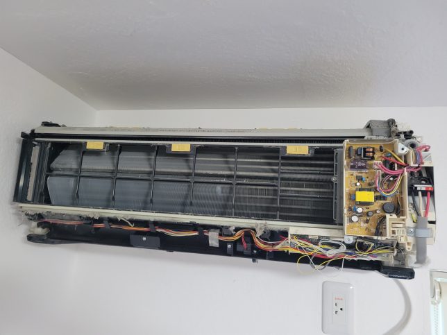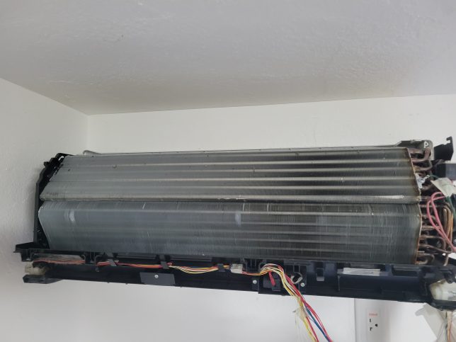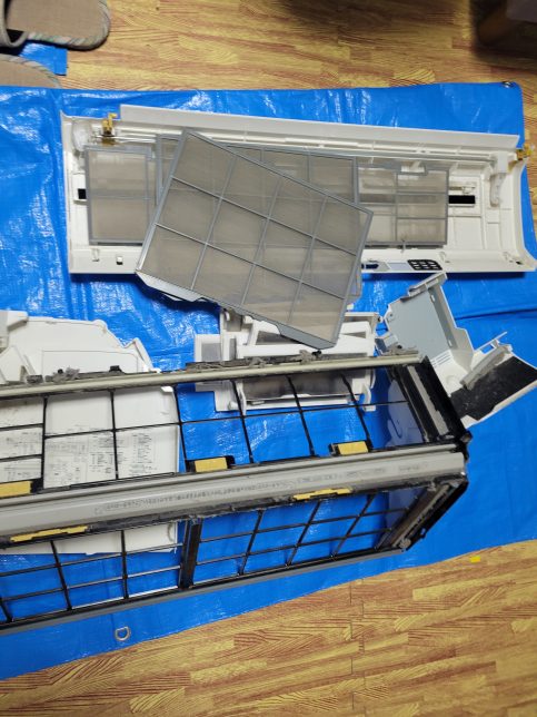 お掃除ユニットの骨が細くこのままでもアルミフィンがかなり出ているのでこのまま洗浄する業者さんもいます。