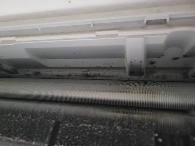 こちらもアルミフィン全体にカビが広がっています。