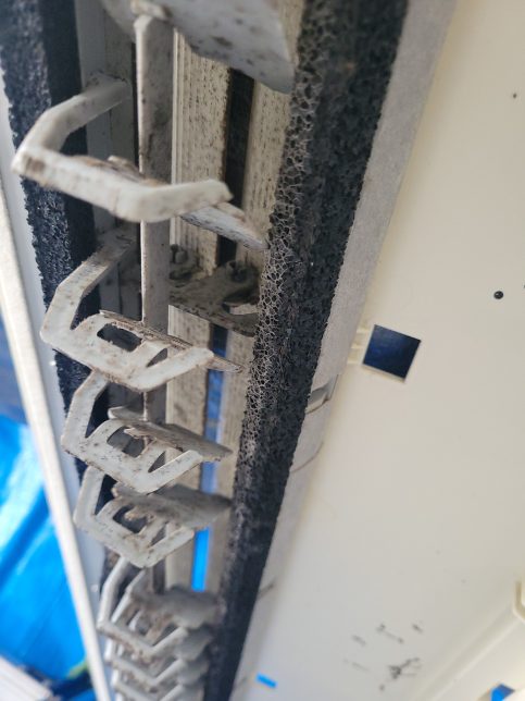 ルーバー(風向板)などの各パーツもカビが広がっています。