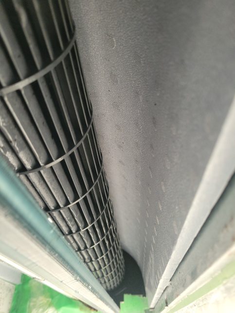 冷暖房機能の低下につながるアルミフィンの汚れを専用洗剤で浮き上がらせて高圧洗浄で洗い流します。