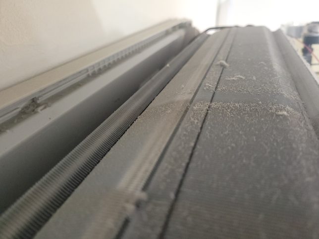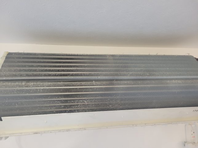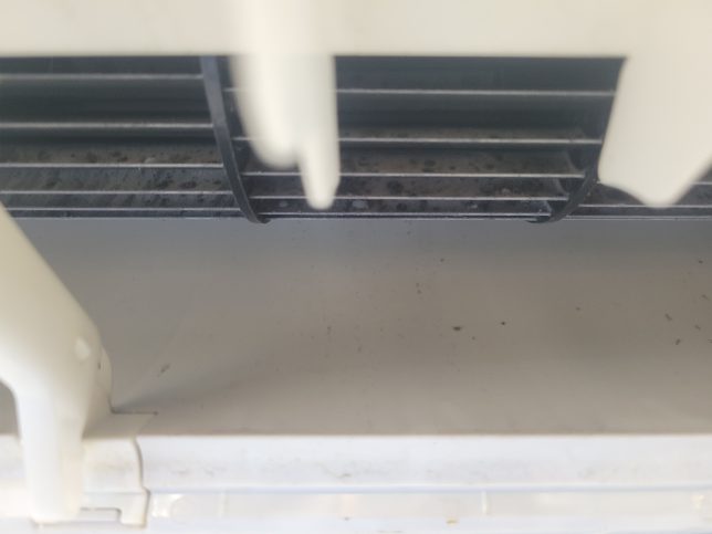 お掃除ユニットが大きくアルミフィンが完全に隠れているので、お掃除ユニットを外さない簡易洗浄だとアルミフィンやお掃除ユニットの裏側にたくさんの汚れが残ってしまいます。