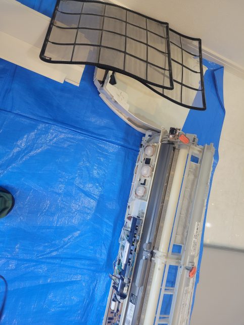 草加市 パナソニックのお掃除機能付きエアコンのクリーニング