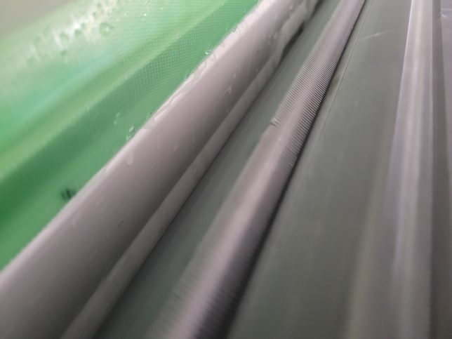 送風ファンを手で押さえて洗浄しないと高圧洗浄の勢いで汚れが奥まで飛び散ってしまいます。