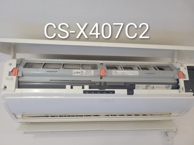 草加市でパナソニックのお掃除機能付きエアコン(CS-X407C2)をクリーニングしました。