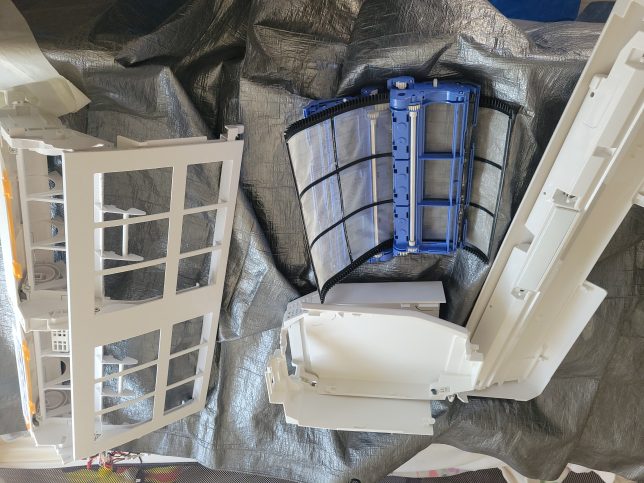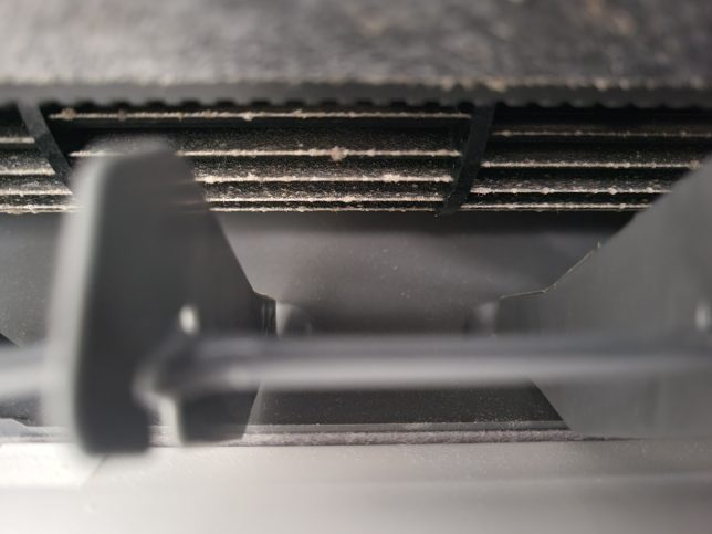 お掃除ユニットを外さない簡易洗浄だとアルミフィンやお掃除ユニットの裏側にたくさんの汚れが残ってしまいます。