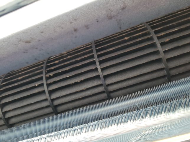 クーラー使用時はアルミフィンで空気が冷やされて結露が続くのでカビが増殖しやすい環境となります。