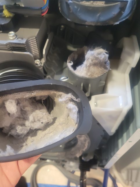 そして3つ目はドラム槽とヒートポンプを繋ぐ乾燥ダクトのホコリ詰まりです。