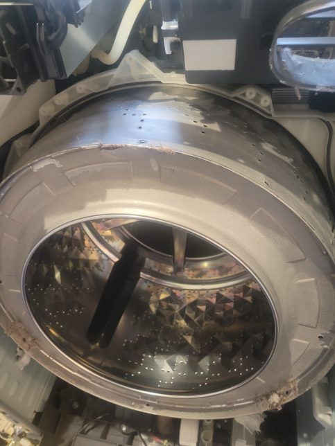 今回のドラム槽は洗剤カスで真っ白でした。