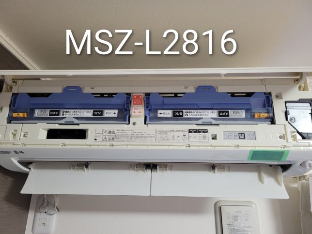 川口市で三菱のお掃除機能付きエアコン(MSZ-L2816)をクリーニングしました。