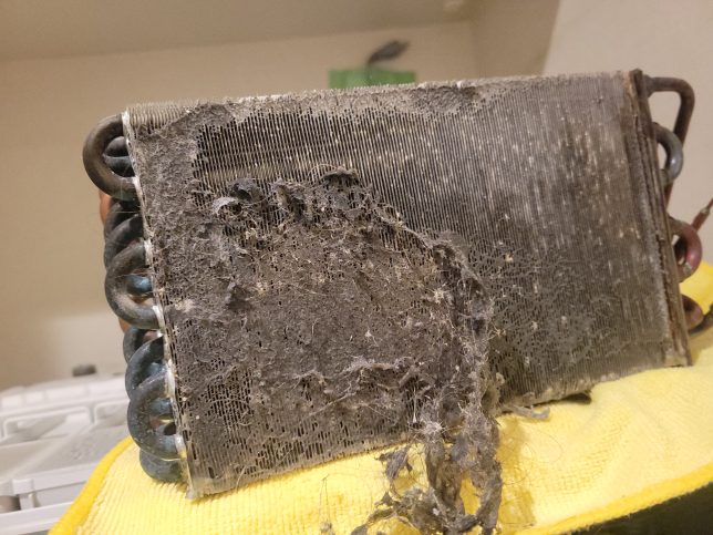 肝心のヒートポンプが髪の毛とホコリで覆われていました。