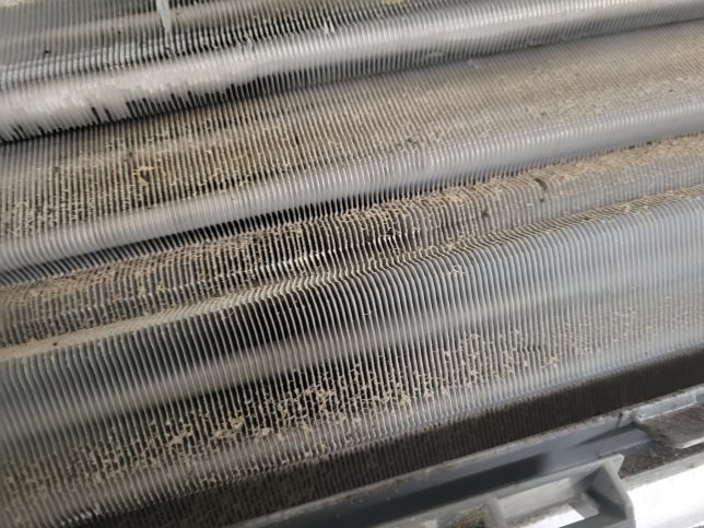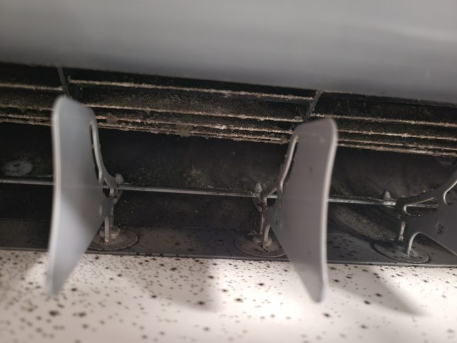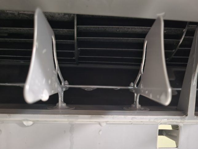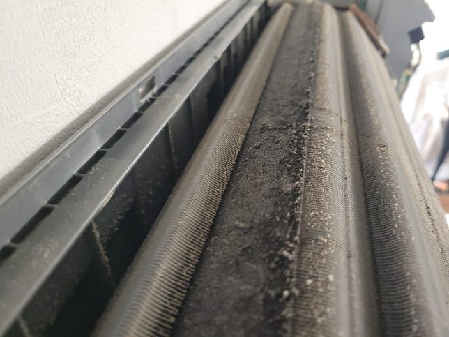 フィルター自動掃除の際は振動でフィルターの細かいホコリがアルミフィンにパラパラと落ちるのでホコリも溜まってしまいます。