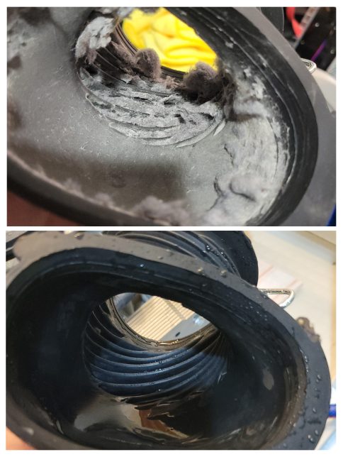 熱源のヒートポンプは髪の毛とホコリが溜まり始めていました。