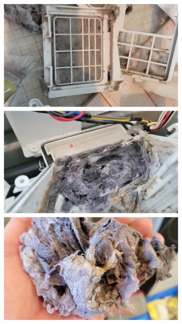 ご依頼のきっかけはお客様が偶然見つけてしまった乾燥フィルター奥のホコリの塊です。