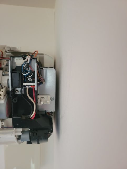 隅々まで洗浄するために、右壁とのスキマがない場合は右側の配線が繋がったままお掃除ユニットを持ち上げて洗浄します。